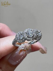 Three-stone rings feature a center diamond with two side stones. Each stone often represents past, present, and future. This style feels meaningful and balanced. It also adds width across the finger.